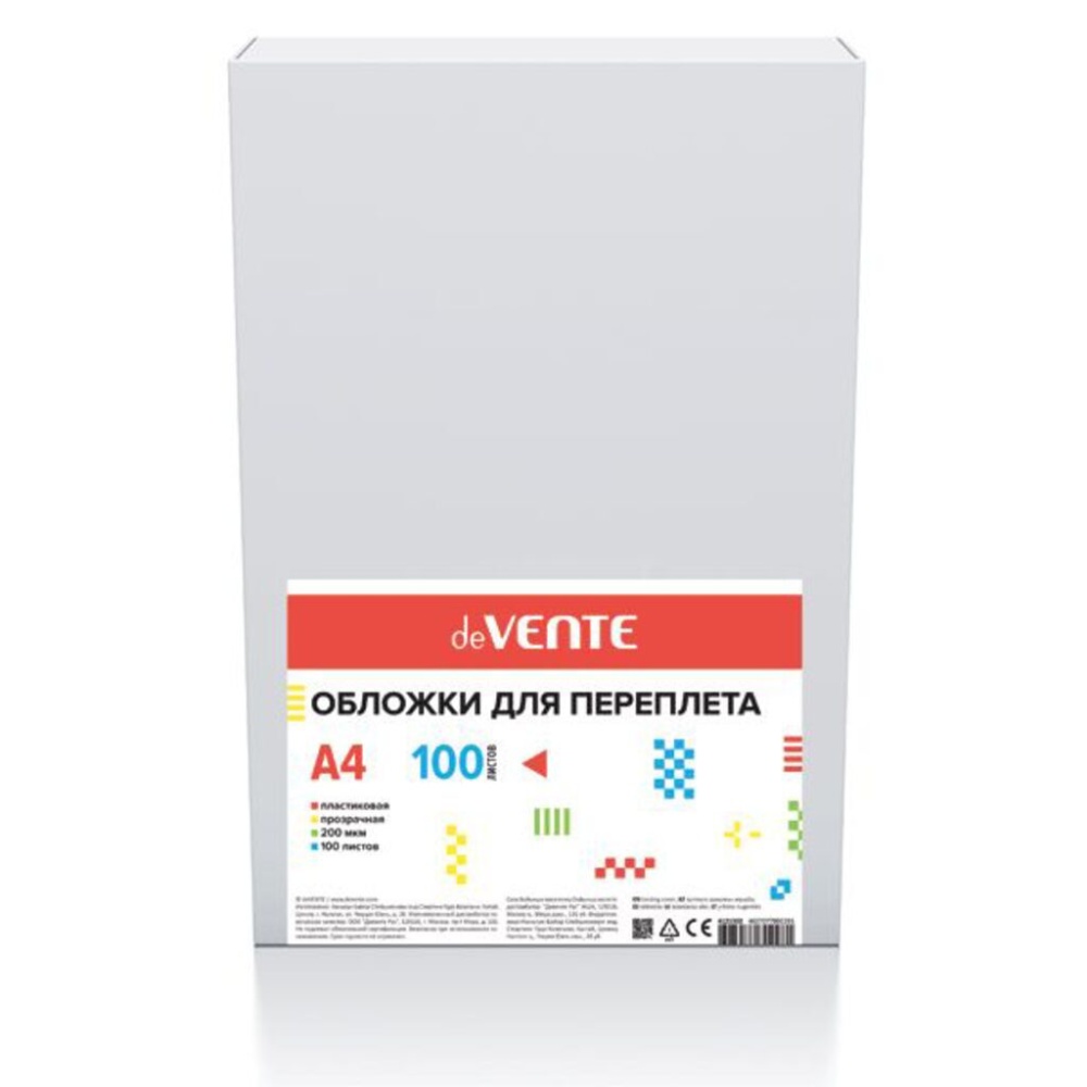 Обложка для переплета "deVENTE" A4, толщина 200 мкм, пластик прозрачный, 100 л