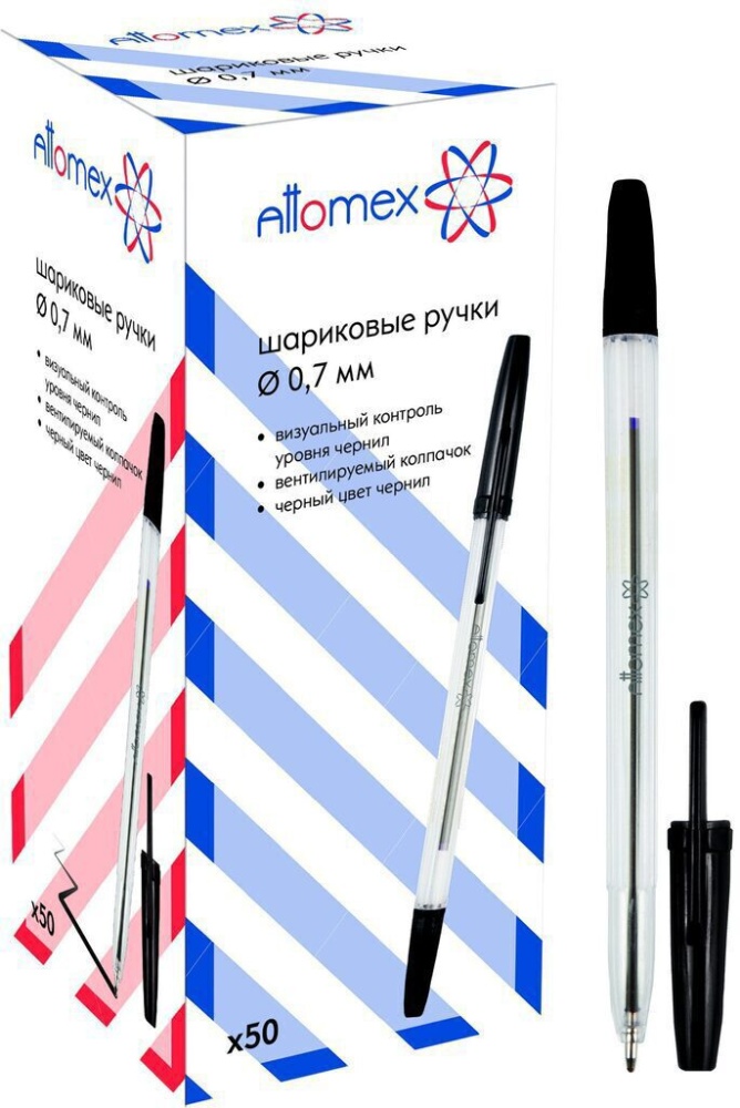Ручка шар. Attomex, 0,7мм, черная, прозрачный корпус