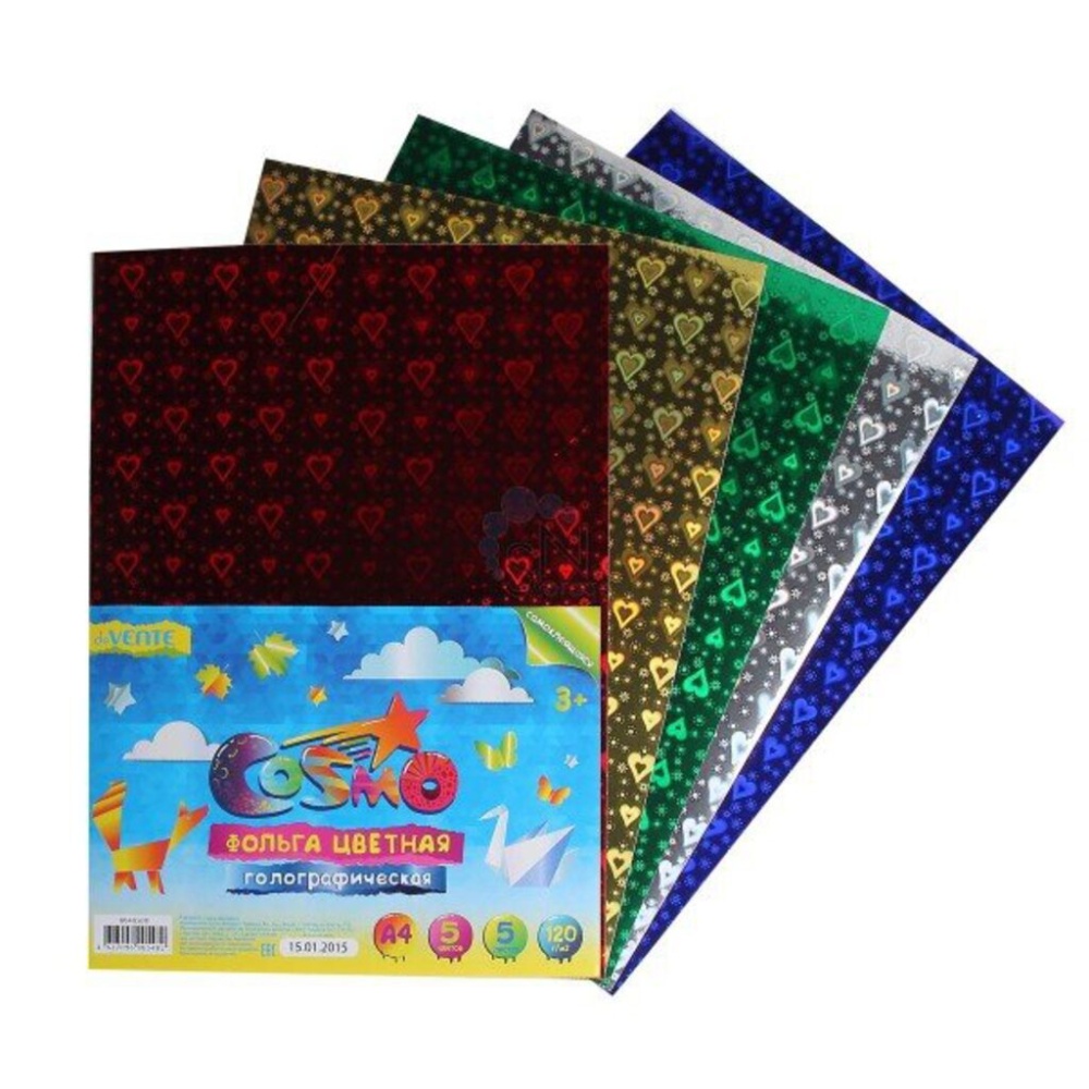 Бумага цв. голографическая самокл., А4 5цв. 5л. одностор., пл. 120 гр/м2