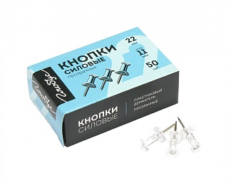 Кнопки силовые прозрачные 50 шт. в картонной коробочке, материал сталь и пластик. Цвет прозрачный. Предназначены для использования на мягких и полутвердых поверхностях: бумага, картон, пробка, текстиль.