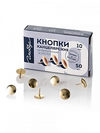 Кнопки канцелярские, материал металл, диаметр 10мм, цвет золотистый, 50шт. в картонной коробочке