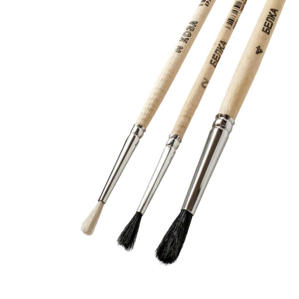 Набор кистей "Акварель" 3 шт. (Коза 2 круглая, Белка 1 круглая, Белка 4 круглая)