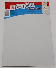 Картон белый 8 листов. Внутренний блок изготовлен из немелованного картона плотность 200г/м2. Белый картон может служить основой для аппликаций, материалом для моделирования, широко используется в детском творчестве, он хорошо раскрашивается карандашами, фломастерами, красками. Листы картона скреплены скобой.