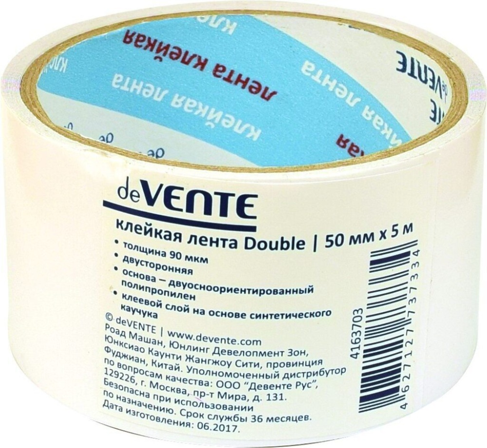 Скотч 2 сторон. 50мм*5м 90мкм полипропелен