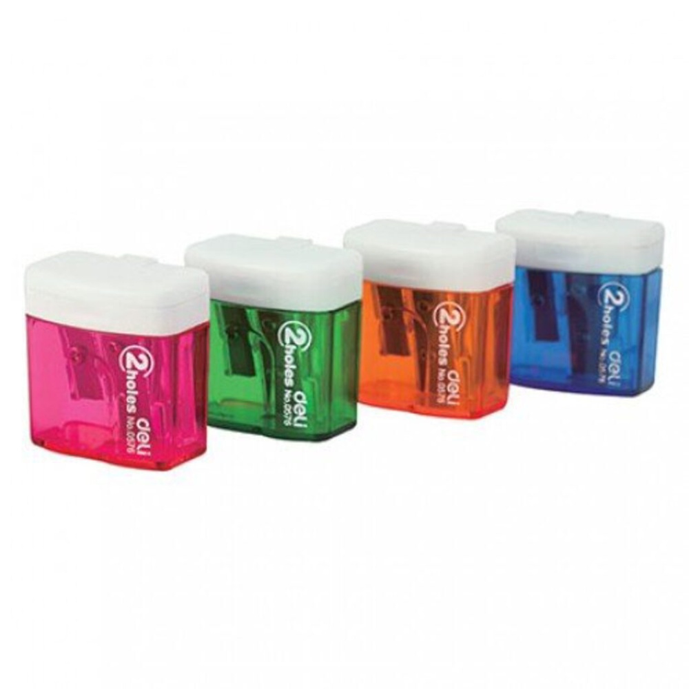 Пластиковая точилка с тонированным контейнером для сбора стружки. Два отверстия для заточки стандартных и утолщенных (Jumbo) чернографитных и цветных карандашей. Отверстия дополнительно закрываются крышкой.
