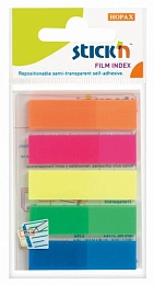 Закладки пластиковые с клеевым краем предназначены для временных пометок страниц. Размер закладки - 12х45 мм. В упаковке 5 неоновых цветов (голубой/желтый/зеленый/оранжевый/розовый) по 25 листов. Упакованы на пластиковой подложке (в виде закладки) в ПЭТ-пакете с европодвесом. На закладках можно делать надписи. Изготовлены из цветной полупрозрачной полимерной пленки, которая не закрывает текст страницы. Специальный клеевой состав позволяет надежно крепить и многократно переклеивать закладки, не оставляя следов и не повреждая поверхность.