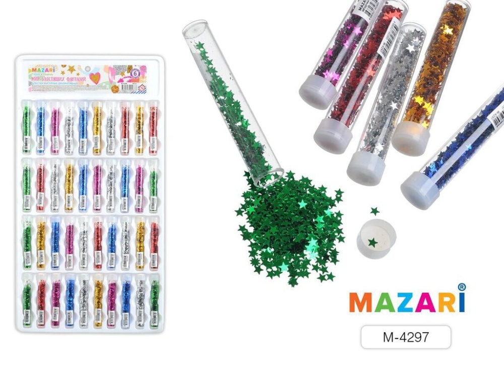 Блёстки декоративные в тубах Звёздочки, 6 цветов, ФИГУРНЫЕ, ассорти