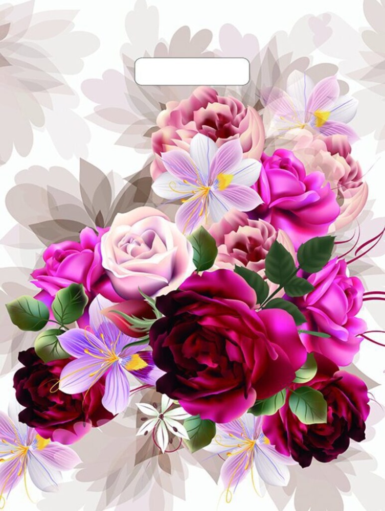 Пакет 40*31см (60мк) с вырубной укрепл. ручкой "Пионы на бежевом" Глянец ПВД