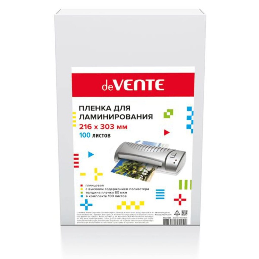 Плёнка д/ламинирования deVente А4, 80мкм, 100шт/уп