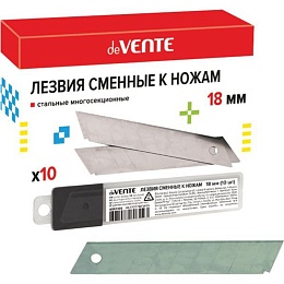 Лезвие сменное "deVENTE" подходит к канцелярским ножам с шириной лезвия 18мм. Упакованы в пластиковом футляре по 10 штук. Страна производитель Китай.