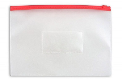 Конверт на молнии А4 0,15мм, карман д/визитки, красная молния