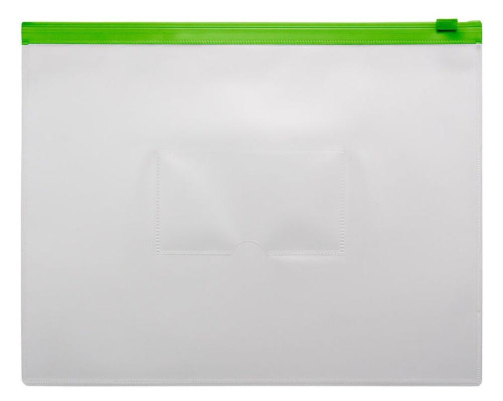 Конверт на молнии А5 0,15мм, карман д/визитки, зелёная молния