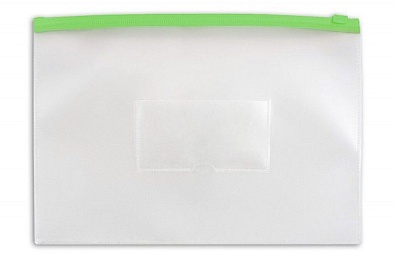 Конверт на молнии А4 0,15мм, карман д/визитки, зелёная молния