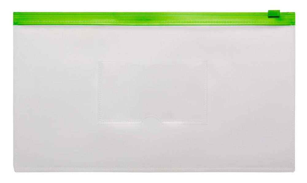 Конверт на молнии А6 0,15мм, карман д/визитки, зелёная молния