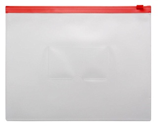 Конверт на молнии А5 0,15мм, карман д/визитки, красная молния