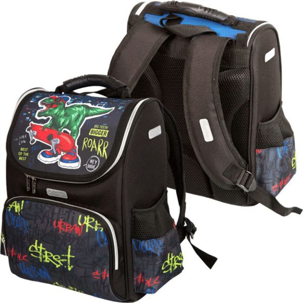 Ранец "Attomex. Lite. City Dino" школьный жесткий 34x27x20 см (14 л) вес 830 г, 1 отделение на молнии с карманом для учебников, 1 передний карман на молнии и 2 боковых на резинке, эргономичная формоустойчивая вентилируемая спинка и мягкие S-образные регулируемые лямки, дно из фактурной резины с каучуковыми ножками, ручка для переноски и петля для повеса, светоотражающие элементы