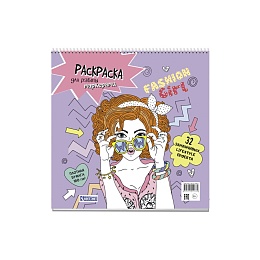 Раскраска "Раскраска для работы маркерами. Fashion Girl (девушка в очках)" 196*196мм, 64стр.