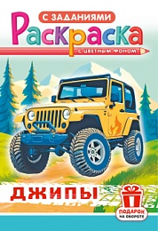 Раскраска с заданиями "Джипы" А4 16стр.