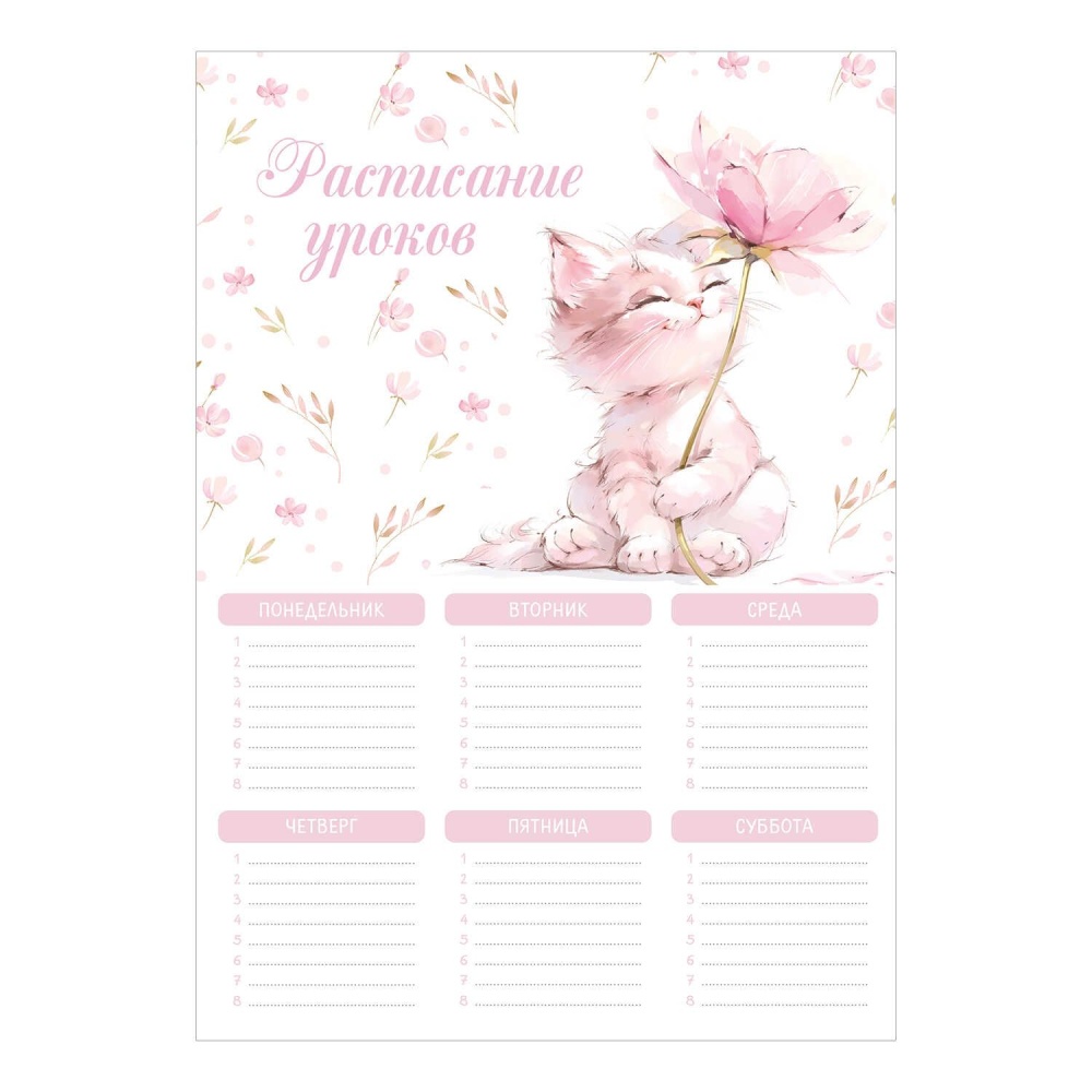 Расписание уроков А4 "Кот с цветком" выб. УФ-лак, 235гр/м2