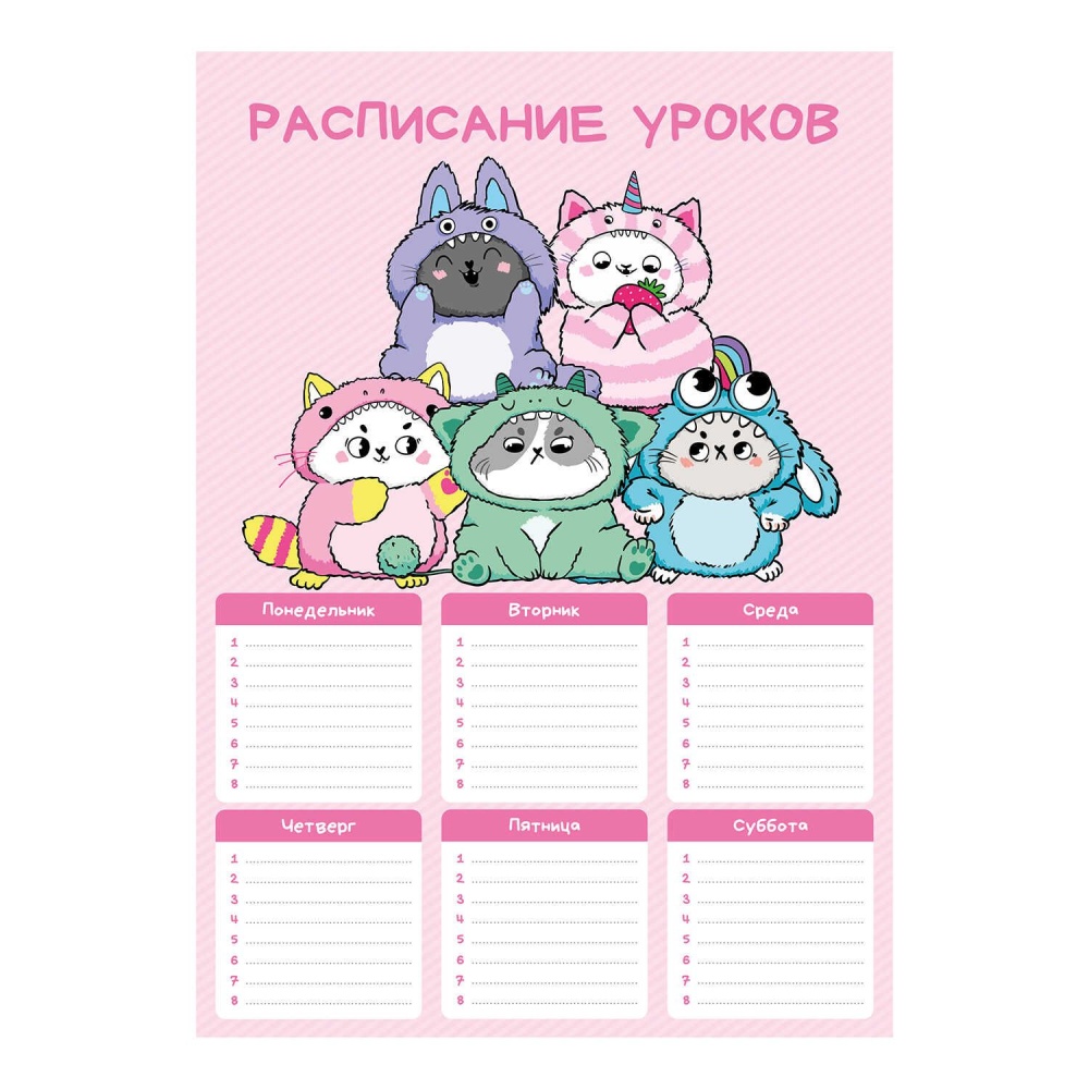 Расписание уроков А4 "Котята в кигуруми" выб. УФ-лак, 235гр/м2