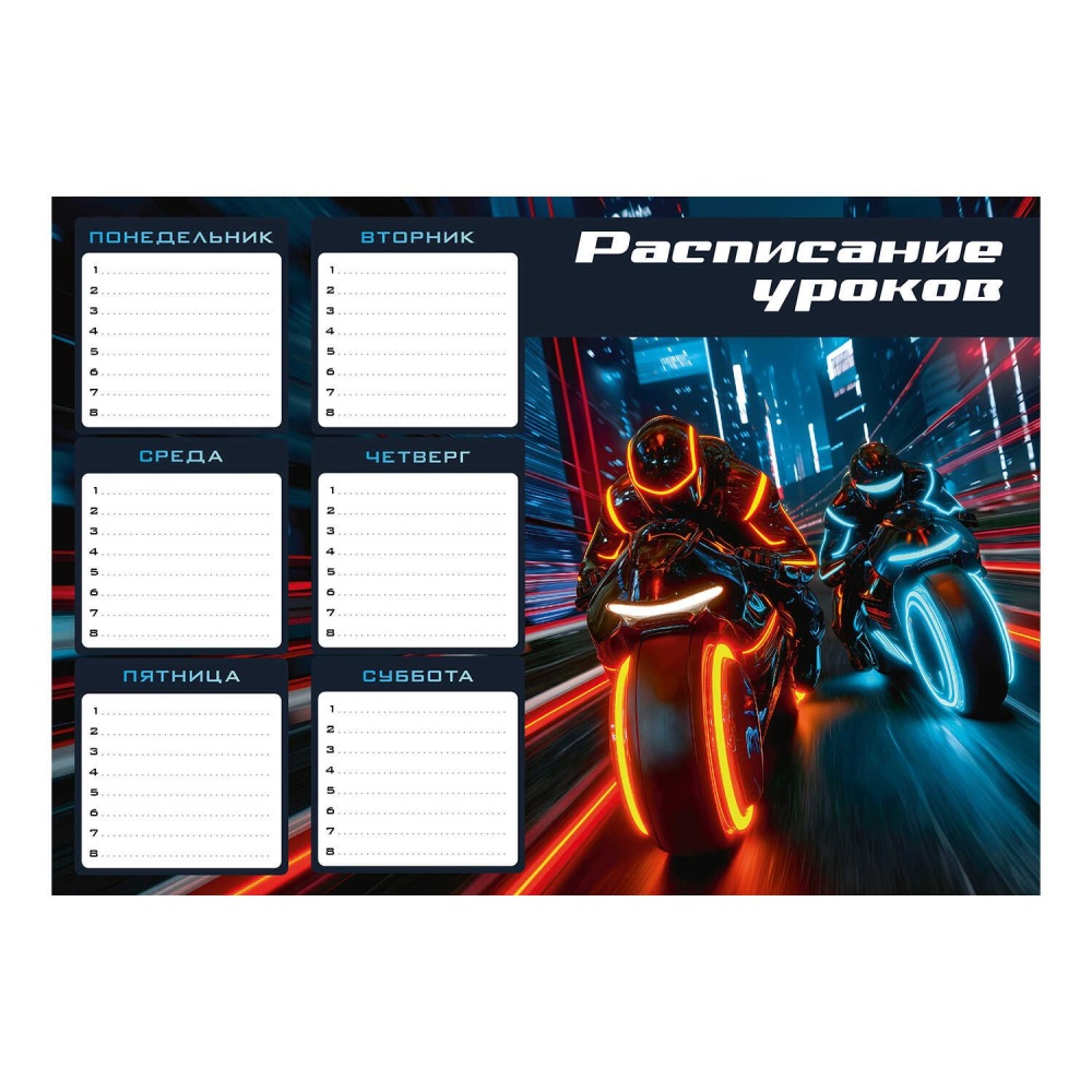 Расписание уроков А4 "Ночные мотоциклисты" выб. УФ-лак, 235гр/м2