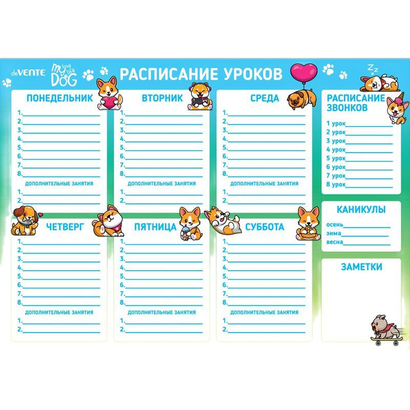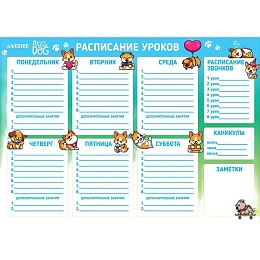 Расписание уроков магнитно-маркерное многоразовое "deVENTE. Собачьи истории" А3 (420x297 мм), ламинированное, цветная печать, пластиковый пакет