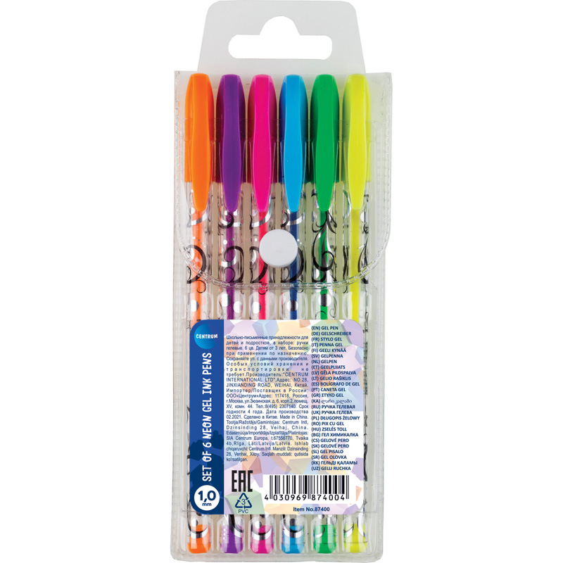 Набор гелевых ручек Centrum 6 цв. Neon, 1,0мм