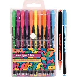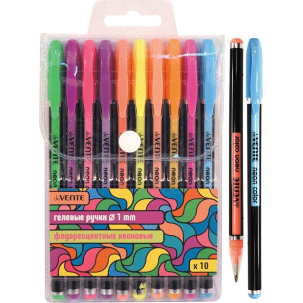 Набор гелевых ручек deVENTE 10цв. "Neon Black" 1мм, черный корпус, чернила НЕОН