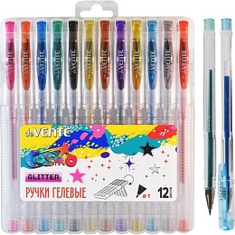 Набор гелевых ручек deVENTE 12цв. "Cosmo Glitter" 1мм, в пласт.кор., держатель