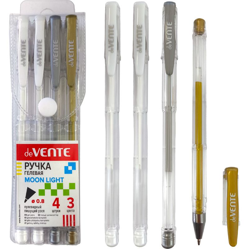 Набор гелевых ручек deVENTE 4шт. "Moonlight"" 0,8мм, д/рисован.на черн.бумаге