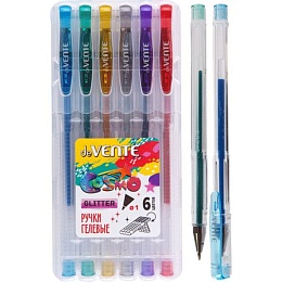 Набор гелевых ручек deVENTE 6цв. "Cosmo Glitter" с блёстками., прозрачный корпус, 1мм
