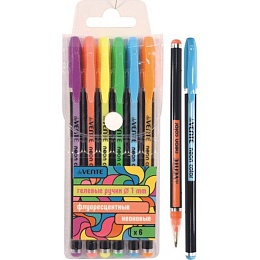 Набор ручек гелевых "deVENTE. Neon Black" 06 флуоресцентных неоновых цветов, d=1 мм, черный корпус с цветными полосами, сменный стержень, в пластиковом блистере