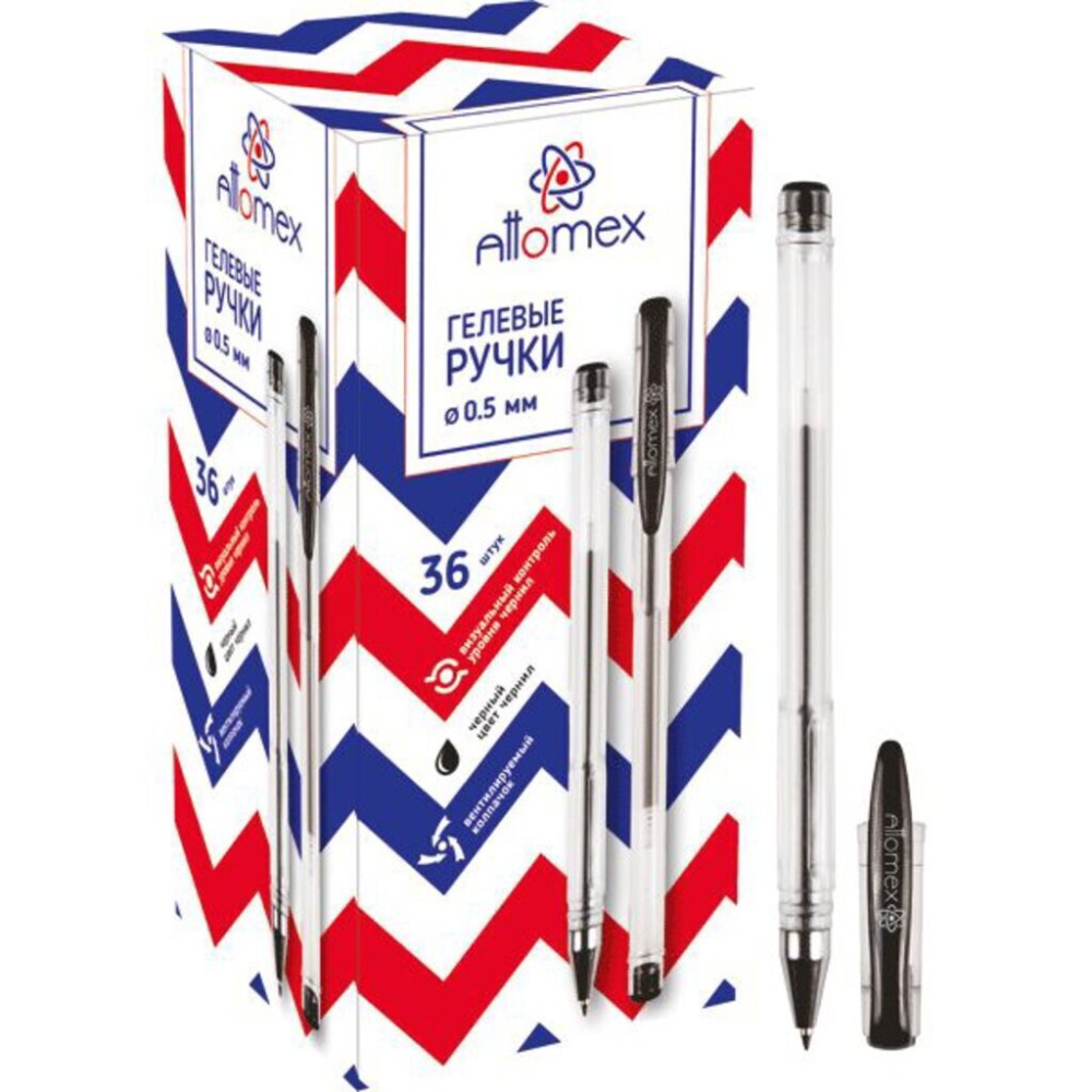 Ручка гелевая Attomex 0,5мм, прозрачный корп., черная
