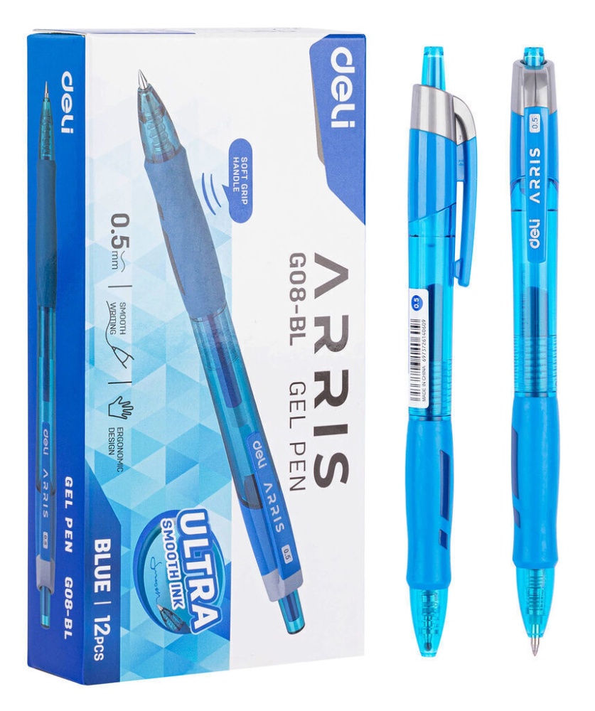 Ручка гелев. Deli Arris EG08-BL прозрачный/голубой d=0.5мм синие автоматическая резин. манжета. длина стержня 109 мм