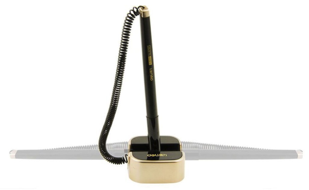 Ручка гелевая, на подставке, на липучке, диаметр шарика 0,7 мм, синяя Ручка гелевая с синими чернилами Deli на пружинке и на подставке с регулируемым углом наклона. Диаметр пишущего узла составляет 0,7 мм. Ручка пишет очень тонко и аккуратно. Гелевая ручка на подставке - неотъемлемый атрибут клиентских офисов. Легко крепится к столу с помощью двухстороннего скотча и подойдет для банков, отелей, сервисных центров и других организаций. Цвет чернил синий
