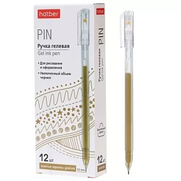 Ручка гелевая Hatber "Пин" 0,5мм, золото