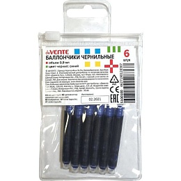 Набор сменных картриджей для перьевой ручки. Цвет чернил - синий, в упаковке 6 шт. Сменные картриджи с чернилами позволяют легко и просто заправить перьевую ручку, при этом не испачкавшись. 0.9 мл, диаметр баллончика 3.4 мм, высота 5 см, в пластиковой сумочке на молнии