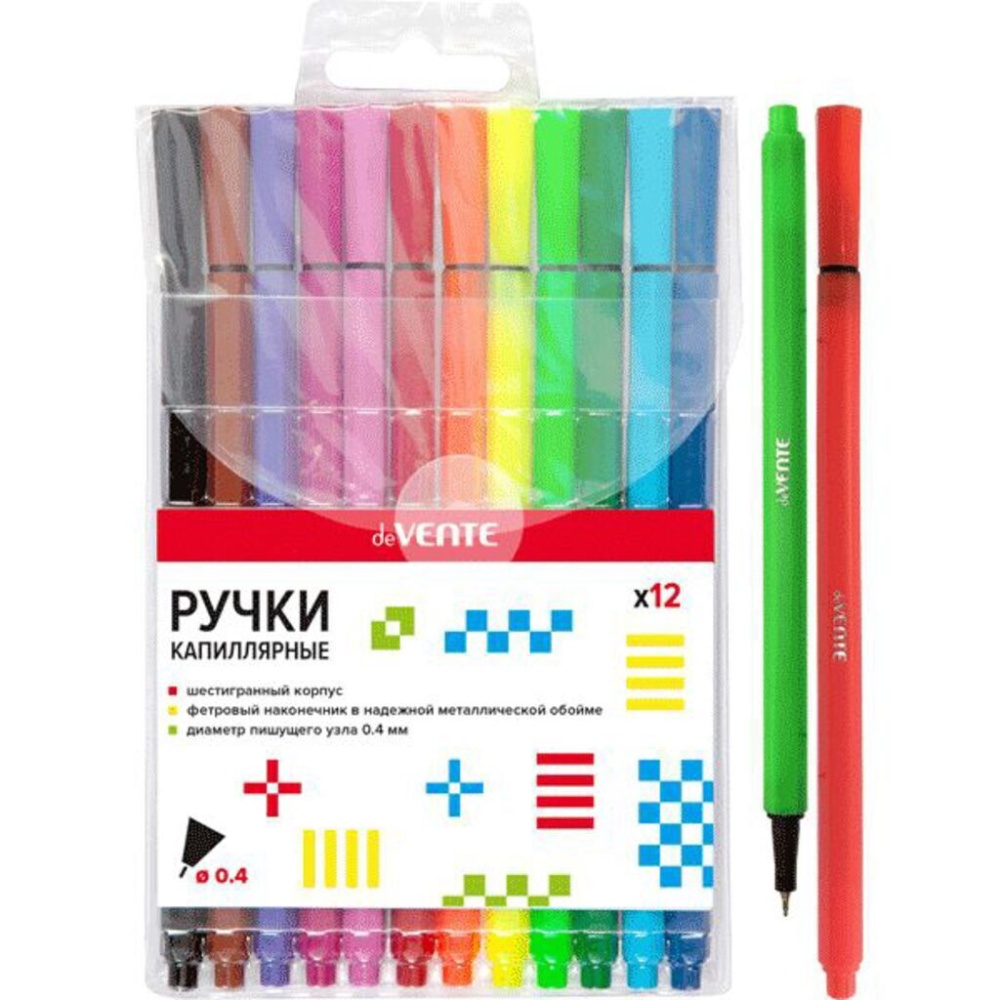 Набор ручек капиллярных "deVENTE" 12 цветов, d=0,4 мм, с цветным шестигранным корпусом, в пластиковом блистере