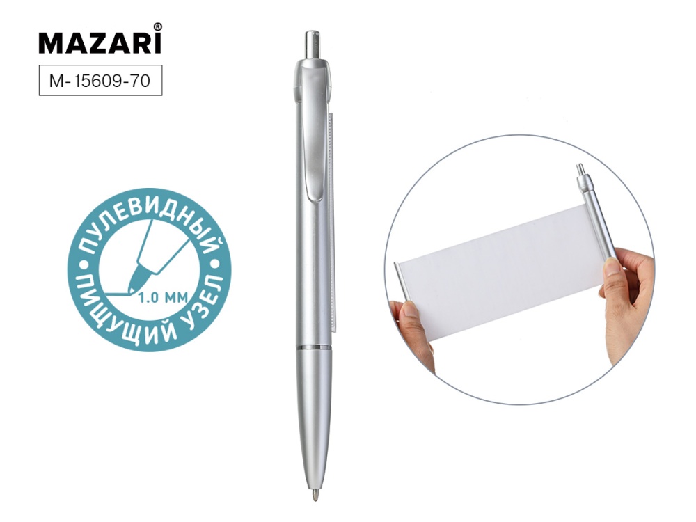 Ручка шар. 2в1, ручка, шпаргалка, синяя, 1,0мм, серебрянная