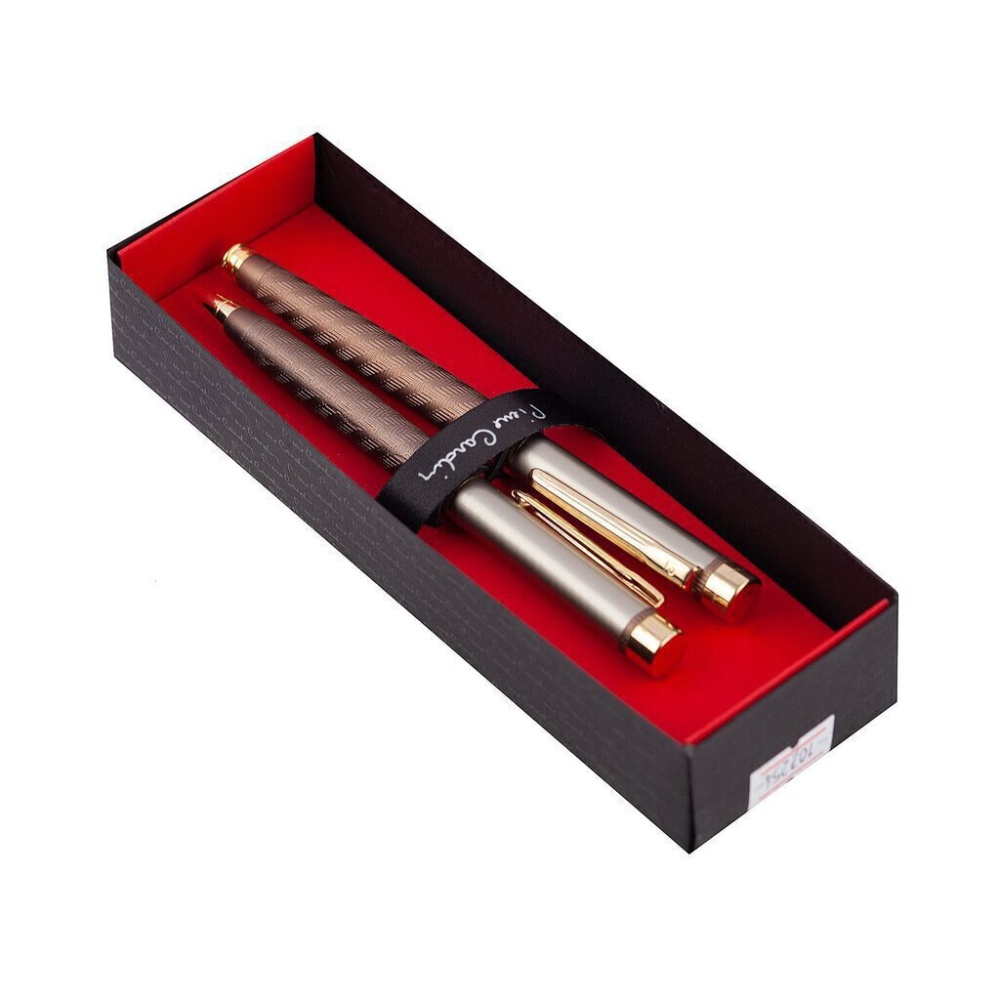 Набор: ручка шариковая+роллер Pier Cardin, корпус-латунь с матовым покрытием