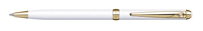 Ручка подарочная шариковая PIERRE CARDIN SLIM, корпус белый, латунь,сталь и позолота