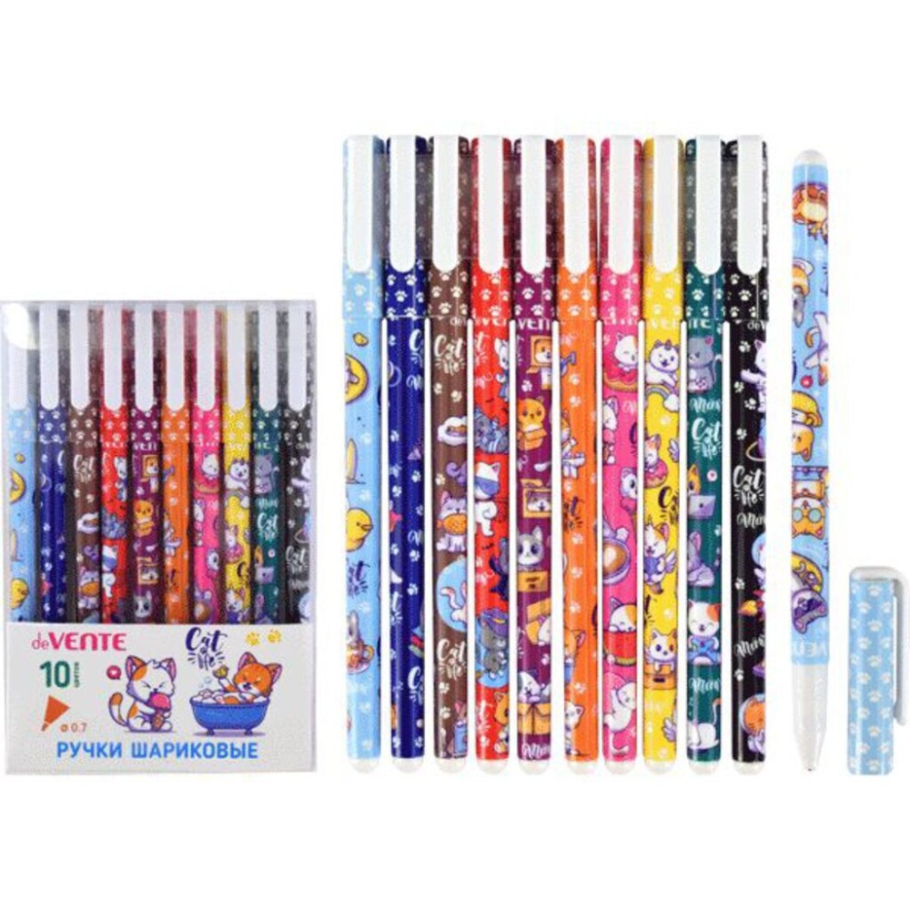 Набор ручек шариковых подарочных "deVENTE. Из жизни котиков" 10 цветов, d=0,7 мм, пластиковый корпус c запечаткой, сменный стержень, в пластиковом блистере