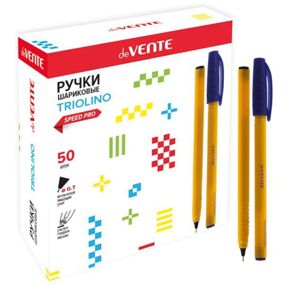 Ручка шариковая "deVENTE. Triolino Sun" серия Speed Pro, d=0,7 мм, ультра гладкое письмо, чернила на масляной основе, игольчатый пишущий узел, жёлтый трехгранный корпус, рифлёная грип-зона, сменный стержень, индивидуальная маркировка, в картонной коробке, синяя