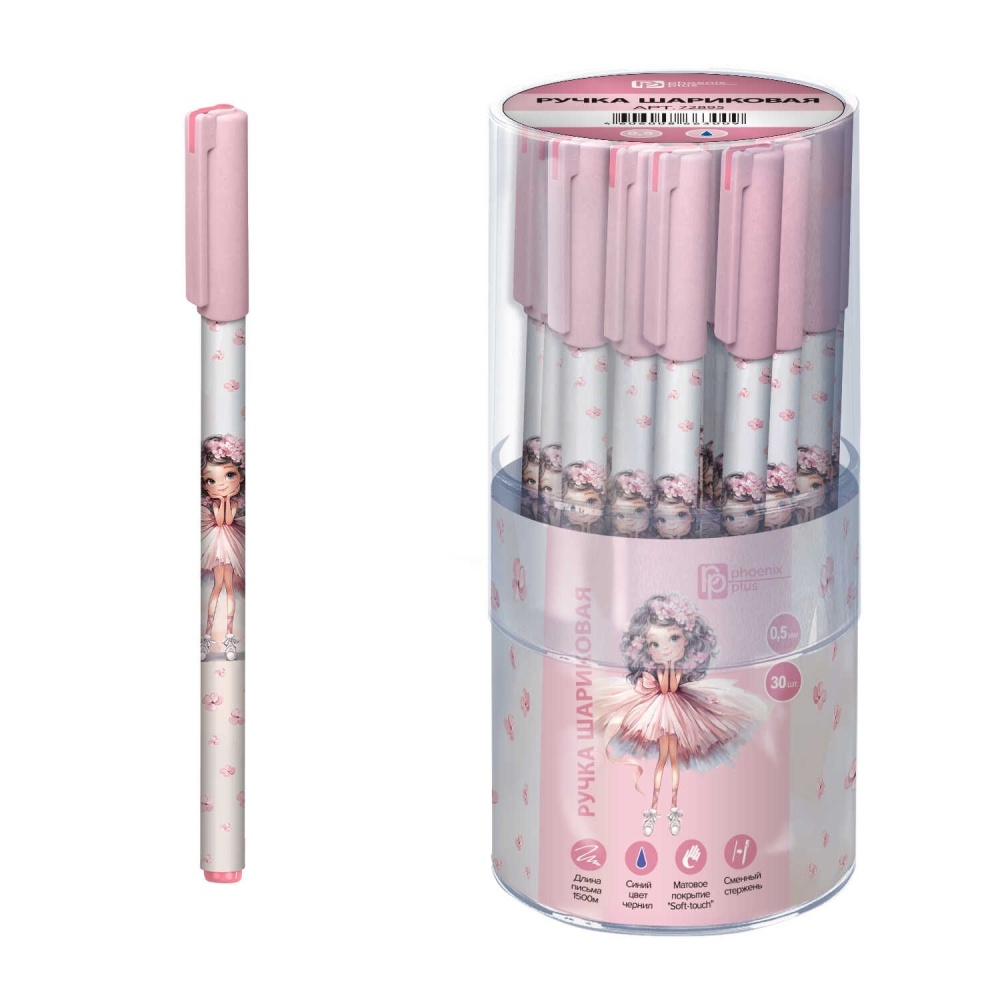 Ручка шар. Феникс+ "Балерина с цветочками" синяя, 0,5мм., софт-тач