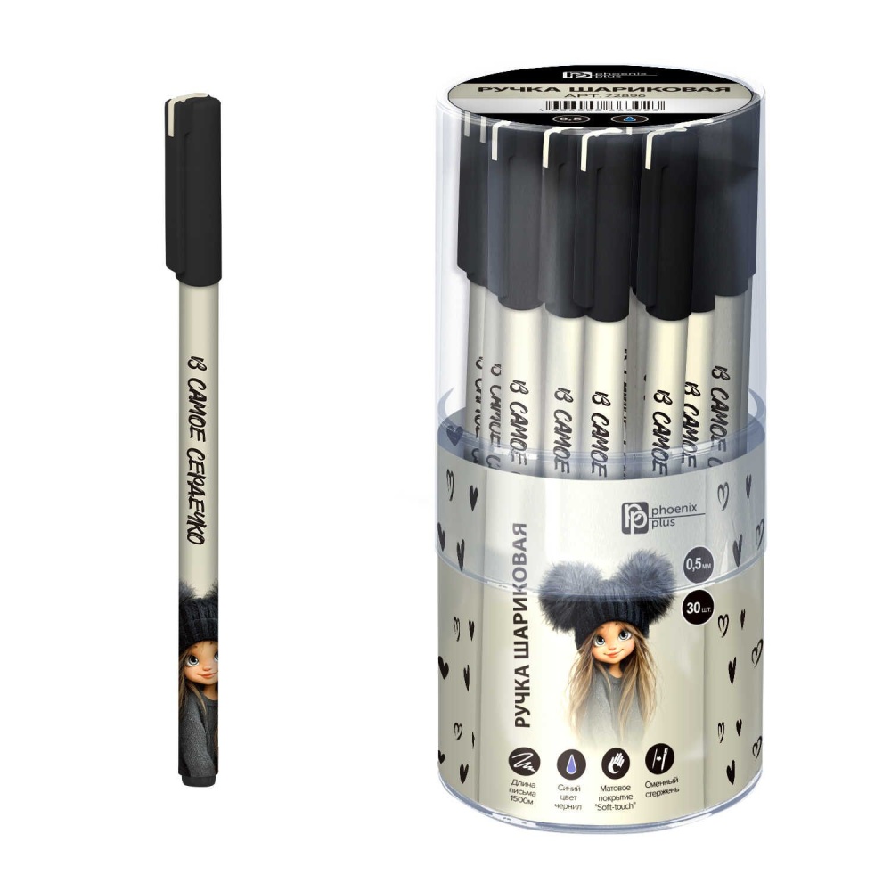 Ручка шар. Феникс+ "Девчонка в шапке" синяя, 0,5мм., софт-тач