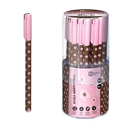 Ручка шар. Феникс+ "Цветочки на коричневом" синяя, 0,5мм., софт-тач