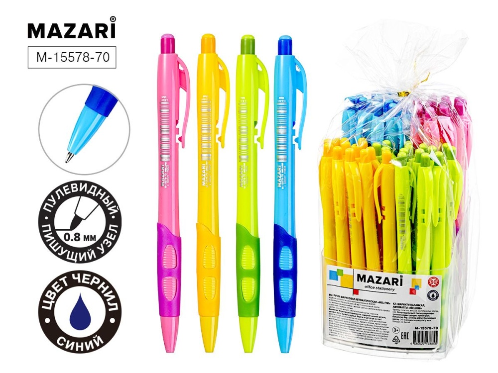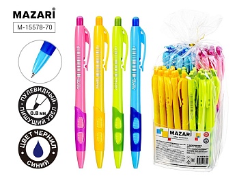 Ручка шар. MAZARI автомат "Mellow" синяя, масл.осн., 0,8мм, грип, смен.стерж. 108мм