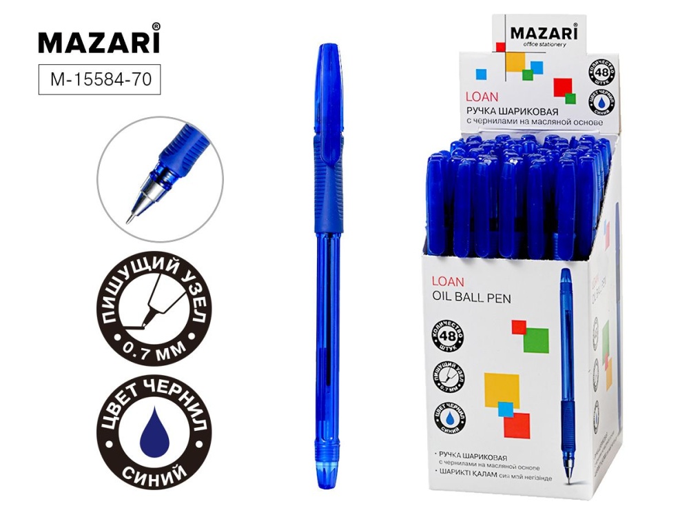 Ручка шар. MAZARI "Loan" синяя, масл.осн., игольч.након., 0,7мм, смен.стерж. 140мм*