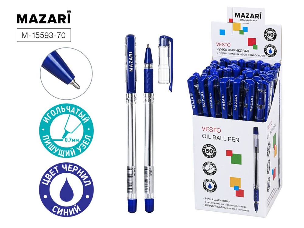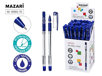Ручка шар. MAZARI "Vesto" синяя, масл.осн., 0,7мм, игольч.након., резин. грип, смен.стержень 140мм*
