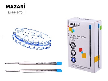 Стержень шар. MAZARI 99мм, типа Parker, синий, 0,7мм, металлический